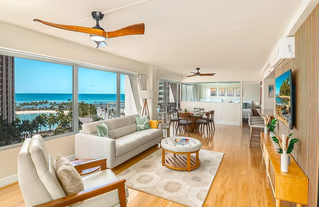 広々とした115m²のホノルルUpscale 2Br & 2Ba Ocean View In Waikiki With Parking!アパートメントから徒歩で5分離れたヒルトン・ラグーンなどの観光スポットへ行きやすいです。